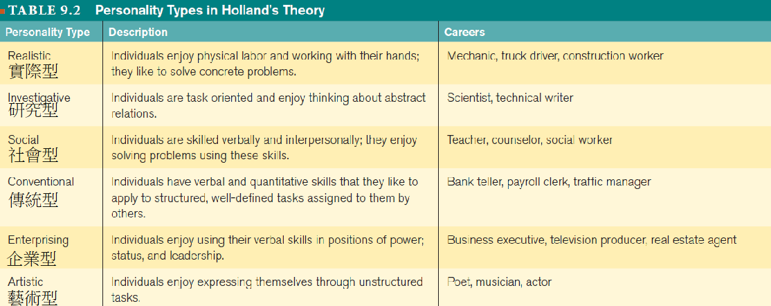 • 當一個人的人格特質和工作環境相同時,就會感到滿足、成功且穩定