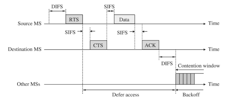 - MS A & MS B 聽到 AP 發送的 CTS 就知道此時有人正在使用通道,暫停傳送資料