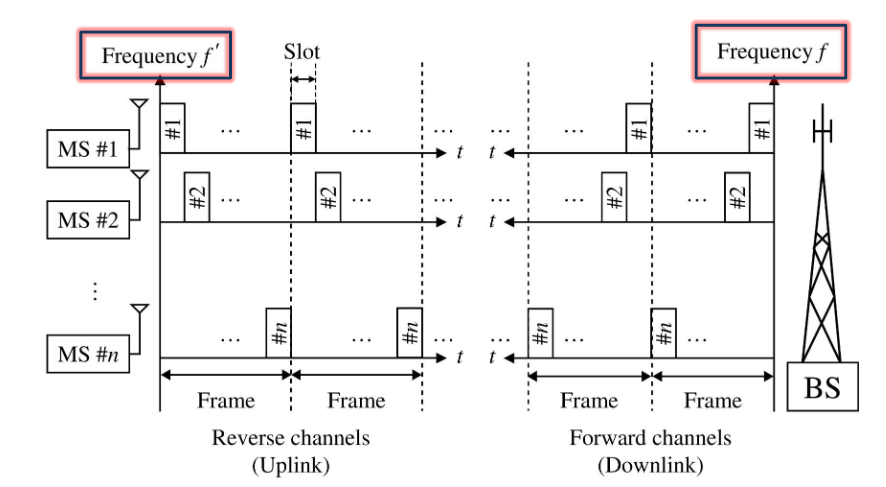 - Time: TDMA (Time Division Multiple Access)