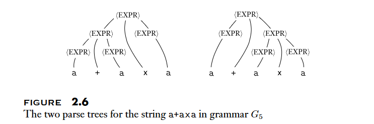 Inherently ambiguous: The context-free languages that can be generated only by ambiguous grammars. For example, .