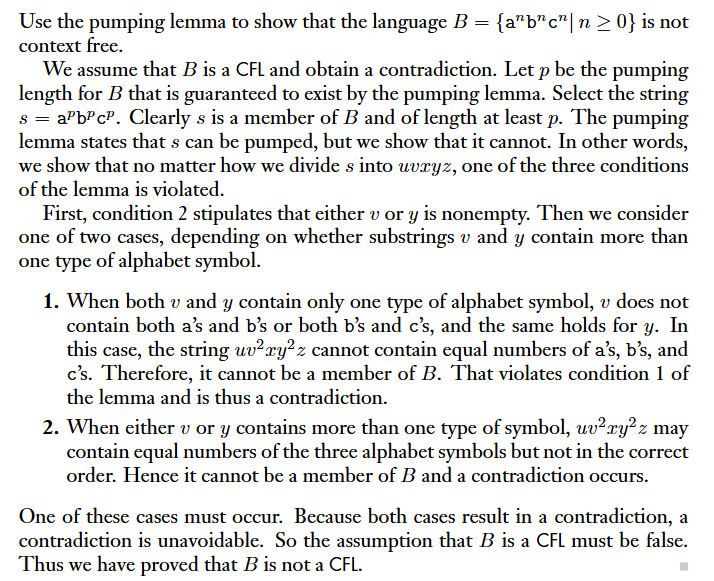 有了 Pumping Lemma for CFLs,我們可以利用反證法去證明一個 Languages 是 non-context-free languages: